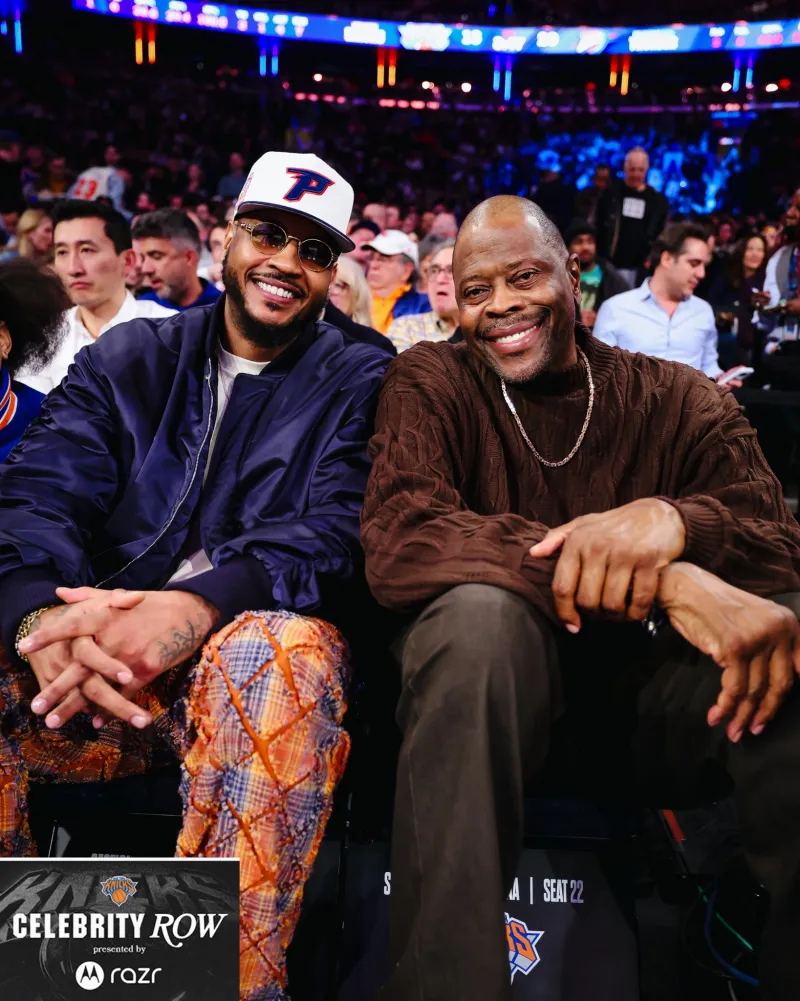 赛后,尼克斯社媒晒出卡梅罗-安东尼与帕特里克-尤因的合影照片,并配文:“两位伟大的球员。”